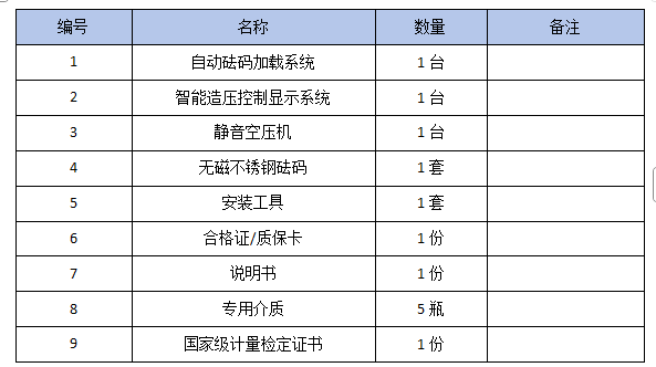 六、全自動(dòng)活塞式壓力計(jì)配置清單